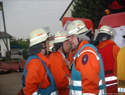Nicht, wie sonst üblich in Sulzfeld, sondern in Zaisenhausen fand in diesem Jahr die Jahreshauptübung der Freiwilligen Feuerwehr statt. Am Samstagnachmittag war es während Wartungsarbeiten in der Lackierkabine der Firma Dieffenbacher zu einem Brand gekommen. Dabei wurden drei Mitarbeiter verletzt und mussten gerettet werden. Dies war die Ausgangslage bei der von Rainer Hable, Klaus Zill und Jürgen Schaub groß angelegten Übung. Nachdem das Feuer von Mitarbeitern nicht gelöscht werden konnte, wurde um 17:00 Uhr die Feuerwehr alarmiert. Kurz danach traf die Feuerwehr aus Zaisenhausen am Übungsort ein, erkundete die Lage und nahm den ersten Löschangriff vor. Gleichzeitig wurden die Rettungsmaßnahmen für die drei verletzten Mitarbeiter eingeleitet. Die Wehren aus Sulzfeld und Flehingen wurden alarmiert, da sich das Feuer inzwischen weiter ausbreitete und auf das Farbenlager übergriff. Um das gemeinsame Vorgehen zu koordinieren, wurde nach deren Eintreffen eine Führungsgruppe unter anderem aus der Wehr von Sulzfeld mit Kommandant Volker Schäufele, aus Zaisenhausen mit Kommandant Marco Fischer sowie dem Kreisbereitschaftsführer des DRK, Herbert Mühlberger, gebildet. Immer wieder wurden den Rettungskräften von den Übungsleitern weitere Ereignisse eingespielt. So meldete sich während der Übung ein Löschtrupp nicht mehr, welcher sich mit Atemschutz im verrauchten Gebäude befand. Dieser Löschtrupp musste von der Feuerwehr gefunden und aus dem Gebäude in Sicherheit gebracht werden. Die Verletzen wurden jeweils an das DRK Zaisenhausen übergeben und von diesem versorgt. Weiterhin musste unter Atemschutz eine Tür mit einem Winkelschleifer aufgetrennt werden, um in die Halle vorzudringen. Mit mehreren Strahlrohren wurde der Brand bekämpft. Die Drehleiter aus Flehingen unterstützte die Löscharbeiten vom Dach aus. An der Übung nahmen 8 Fahrzeuge der Feuerwehr, darunter die Drehleiter von Flehingen, teil. Vor allem die Wasserversorgung musste für die Fahrzeuge sicher gestellt werden. Deshalb wurde zusätzlich zu den Hydranten die Wasserversorgung über eine Saugleitung von der rund 400 Meter entfernten Kohlbach sichergestellt. Die anspruchsvolle Übung wurde von den Bürgermeistern Eberhard Roth und Wolfgang Bratzel sowie den Gemeinderäten verfolgt. Außerdem beobachteten der stellvertretende Kreisbrandmeister Klaus Mayer, Unterkreisführer Hans Meffle, vom Polizeirevier Bretten der stellvertretende Revierleiter Günter Kolb und von der Firmenleitung Geschäftsführer Günter Dieffenbacher aufmerksam das Geschehen. Insgesamt waren 62 Feuerwehrleute, und acht Einsatzkräfte des DRK mit Karl-Heinz App an dessen Spitze, vor Ort. Ziel der Übung war die Zusammenarbeit mehrer Wehren und dem DRK zu proben, was auch sehr gut gelungen ist. |
